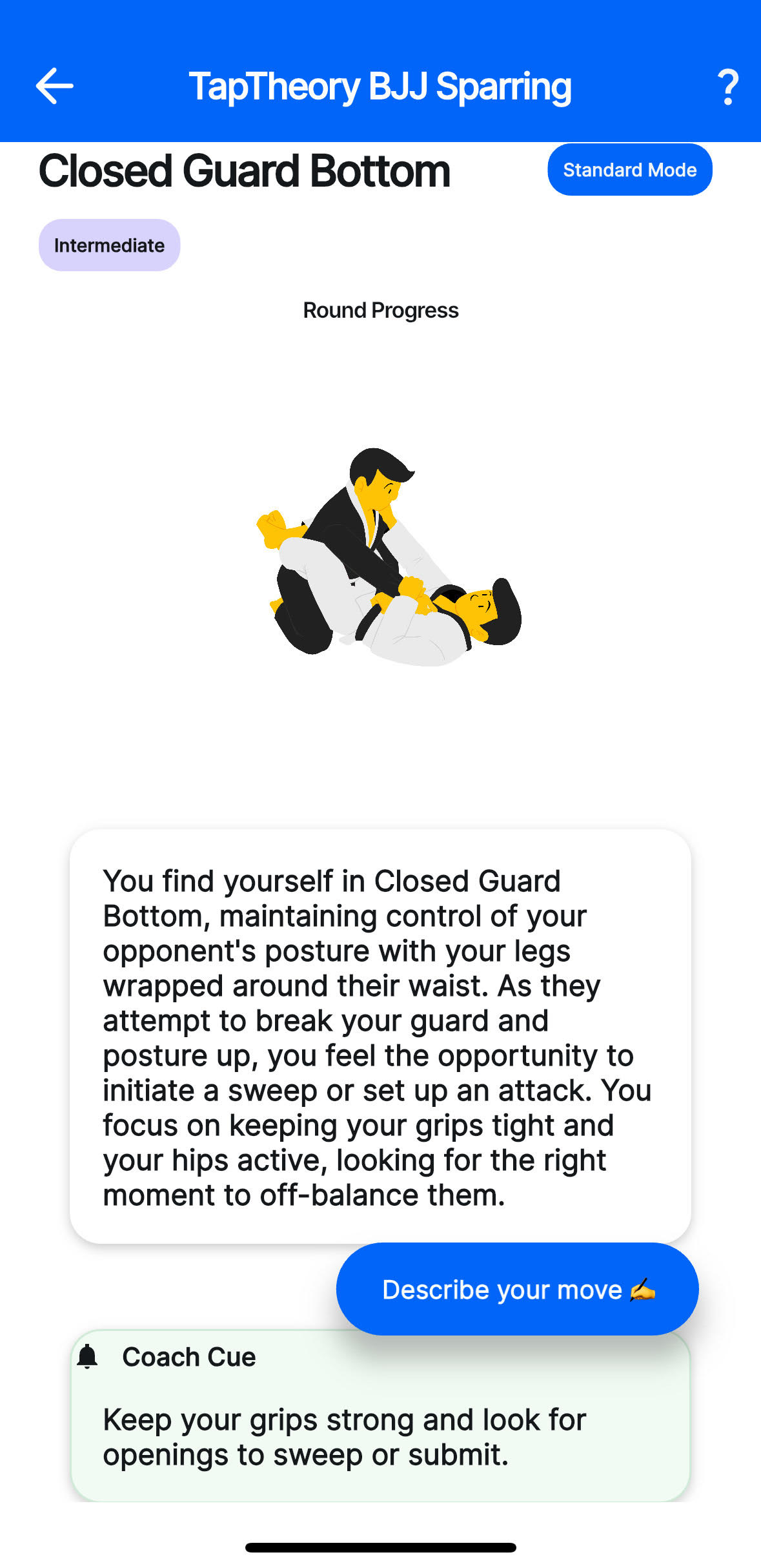 Sharpen your grappling IQ with fast, fun, simulated BJJ sparring anywhere, anytime.
